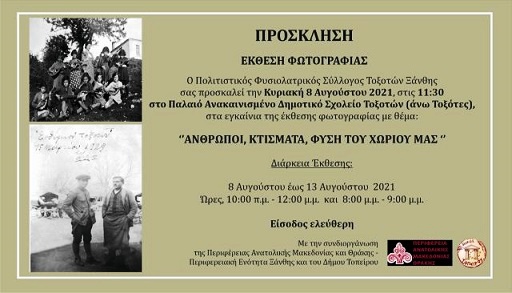 Έκθεση φωτογραφίας με τίτλο “Άνθρωποι, κτίσματα, φύση του χωριού μας” εγκαινιάζεται το πρωί (11.30) της Κυριακής 8 Αυγούστου στο παλαιό ανακαινισμένο δημοτικό σχολείο στους Άνω Τοξότες.