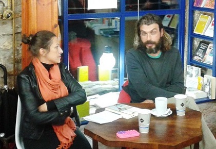 Για τον συγγραφέα μίλησε η φιλόλογος Δήμητρα Σαββατιανού, δίνοντας το έναυσμα για μια γόνιμη συζήτηση την οποία υποδαύλιζε στη συνέχεια με ενδιαφέρουσες ερωτήσεις και εύστοχες παρεμβάσεις.