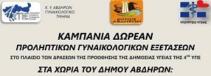 Στο πλαίσιο δράσεων της 4ης Υ.Π.Ε. για προώθηση της δημόσιας υγείας, διοργανώνεται καμπάνια δωρεάν προληπτικών γυναικολογικών δράσεων στα χωριά του δήμου Αβδήρων.