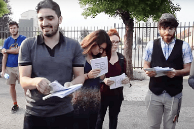 «Υπάρχουν κάποιοι λόγοι για τους οποίους η άμεση δράση ήταν σημαντική, ιδιαίτερα εδώ» λέει η Ελισέβα Γκόλντμπεργκ, διευθύντρια επικοινωνιών στο Κέντρο για την Εβραϊκή Μη Βία, καθώς αποχωρεί από το κτίριο. «Πρώτον, δημιουργεί ένα σκηνικό που αναγκάζει τους ανθρώπους να ακούσουν. Ο δεύτερος λόγος είναι ότι φέρνει κοντά πολλούς καλούς ανθρώπους και δημιουργεί μια κοινότητα για τους ακτιβιστές».