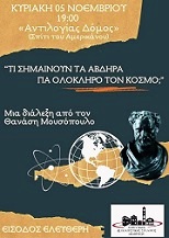 Εκδήλωση με θέμα «Τι σημαίνουν τα Άβδηρα για τον σύγχρονο κόσμο» και εισηγητή τον φιλόλογο-συγγραφέα Θανάση Μουσόπουλο διοργανώνει το απόγευμα (19.00) της Κυριακής 5 Νοεμβρίου το πολιτιστικό κέντρο Αβδήρων «Αντιλογίας δόμος» στο «σπίτι του Αμερικάνου».