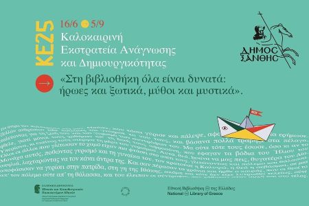 Φέτος το καλοκαίρι, από τις 16 Ιουνίου ως τις 5 Σεπτεμβρίου στην Παιδική Βιβλιοθήκη Δήμου Ξάνθης στον 2ο όροφο, τα παιδιά ανοίγουν πανιά για τον κόσμο της μυθολογίας και των παραμυθιών.