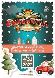 Ξεκινούν την Κυριακή 4 Δεκεμβρίου οι εορταστικές εκδηλώσεις και δράσεις στην «Ευχούπολη» και σε διάφορα σημεία της πόλης, με το ακόλουθο πρόγραμμα: