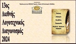 Ο Όμιλος για την UNESCO Τεχνών, Λόγου και Επιστημών Ελλάδος προκηρύσσει τον 13ο Διεθνή Λογοτεχνικό Διαγωνισμό, με έναρξη τη 13η Μαΐου και λήξη τη 15η Ιουλίου. Ο διαγωνισμός περιλαμβάνει τα είδη του λόγου ποίηση, διήγημα, νουβέλα, παιδικό παραμύθι, παιδικό-νεανικό διήγημα.
