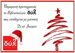 Την παραμονή της πρωτοχρονιάς (Σάββατο 31 Δεκεμβρίου) το βιβλιοπωλείο «Δύο» υποδέχεται το κοινό με μουσική (dj set Jacquez).