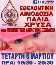 Εθελοντική αιμοδοσία διοργανώνει το απόγευμα (16.30-20.30) της Τετάρτης 6 Μαρτίου στο μειονοτικό δημοτικό σχολείο της Παλιάς Χρύσας ο Σύλλογος Εθελοντών Αιμοδοτών Ξάνθης.