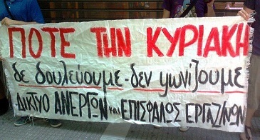 Με αφορμή το άνοιγμα των καταστημάτων για πέντε επιπλέον Κυριακές το χρόνο (πέρα των επτά που έχουν θεσμοθετηθεί έως τώρα), καταδικάζουμε την απόφαση που πήρε ο αντιπεριφερειάρχης Ξάνθης με την σύμφωνη γνώμη της Ο.Ε.Β.Ε. και την ανοχή του Εμπορικού Συλλόγου Ξάνθης, σε κοινή σύσκεψη που πραγματοποιήθηκε στις 18 Δεκέμβρη.