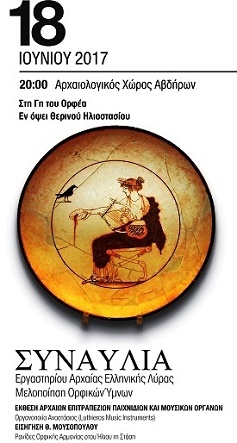 Μια ξεχωριστή εκδήλωση σε μία από τις μεγαλύτερες ημέρες του χρόνου” πραγματοποιεί το βράδυ (20.00) της Κυριακής 18 Ιουνίου στον αρχαιολογικό χώρο Αβδήρων η Εφορεία Αρχαιοτήτων Ξάνθης, σε συνεργασία με το Εργαστήριο Αρχαίας Ελληνικής Λύρας της Φιλοπρόοδης Ένωσης Ξάνθης, την καλλιτεχνική ομάδα «Σείκιλο» και την οργανοποιία «Αναστάσιος».