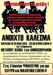 ΑΝΟΙΧΤΟ ΚΑΛΕΣΜΑ ΓΙΑ ΣΥΜΜΕΤΟΧΗ ΣΤΗ ΣΥΖΗΤΗΣΗ /ΣΥΝΤΟΝΙΣΜΟ την ΠΑΡΑΣΚΕΥΗ 16/4/2014 στις 20:30 στο κτίριο της ΕΣΗΕΜΘ