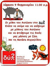 Ελάτε να πούμε και να παίξουμε με τους μύθους του Αισώπου και να φτιάξουμε τις δικές μας μάσκες με ζώα“.