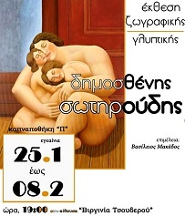 Τα εγκαίνια έκθεσης ζωγραφικής-γλυπτικής του Δημοσθένη Σωτηρούδη πραγματοποιούνται το απόγευμα (19.00) της Παρασκευής 25 Ιανουαρίου στην καπναποθήκη “Π” από τον Σύλλογο Φίλων του Ιδρύματος Θρακικής Τέχνης και Παράδοσης.
