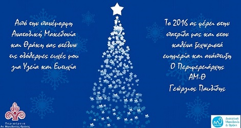 Ο περιφερειάρχης στέλνει τις (ευπρόσδεκτες) εορταστικές ευχές του “από την πανέμορφη Ανατολική Μακεδονία και Θράκη”!