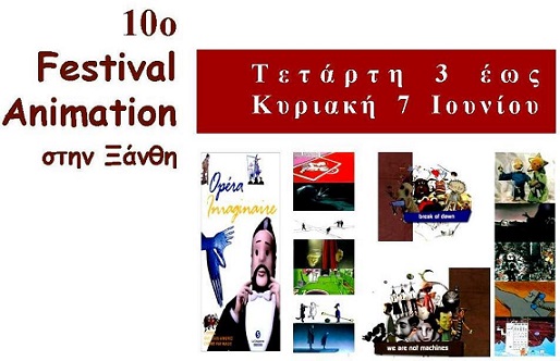 Η Φ.Ε.Ξ. σε συνεργασία με το Ευρωπαϊκό Κέντρο Κινουμένων Σχεδίων παρουσιάζουν το 10o Festival Animation, από την Τετάρτη 3 έως την Κυριακή 7 Ιουνίου (καθημερινά στις 21.00). στο Λαογραφικό και Ιστορικό Μουσείο Ξάνθης.