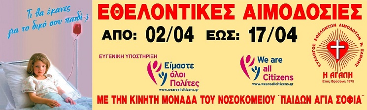 Σε συνδιοργάνωση με τις Διευθύνσεις Δευτεροβάθμιας Εκπαίδευσης Ξάνθης και Καβάλας, τη Διεύθυνση Περιφερειακής Εκπαίδευσης Α.Μ.-Θ., την Περιφέρεια Α.Μ.-Θ. και τους δήμους Μύκης και Αβδήρων, προσπαθήσαμε να συλλέξουμε για ακόμη μια φορά αρκετές μονάδες αίματος από τους εθελοντές αιμοδότες της Ξάνθης και της επαρχίας Νέστου, προκειμένου με τη δράση μας αυτή να ενισχυθούν και ανακουφιστούν κυρίως οι ανάγκες μετάγγισης των παιδιών ηλικίας από λίγων ημερών έως δεκατεσσάρων ετών από ολόκληρη την Ελλάδα (ανάμεσά τους και κάποια ξανθιωτάκια) που «φιλοξενούνται» στο Νοσοκομείο Παίδων «Αγία Σοφία» της Αθήνας.