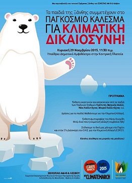 - Χάπενιγκ: Τα παιδιά θα στείλουν με τον δικό τους τρόπο το μήνυμα στο Παρίσι και στην 21η διάσκεψη του Ο.Η.Ε. για την κλιματική αλλαγή.