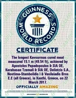 Συνέντευξη τύπου θα δοθεί το απόγευμα (19.00) της Δευτέρας 13 Νοεμβρίου στο Εμπορικό και Βιομηχανικό Επιμελητήριο Ξάνθης, με αφορμή την κατάκτηση του δεύτερου ρεκόρ “Guinness” για τον μεγαλύτερο καβουρμά παγκοσμίως -μήκους 15,1 μέτρων- που παρασκευάστηκε στο πλαίσιο της 5ης Πανελλήνιας Γενικής Έκθεσης Ξάνθης στις 22 Μαρτίου 2017 από κορυφαίες θρακιώτικες επιχειρήσεις του είδους, “με τα ίδια αγνά υλικά και την ίδια παραδοσιακή τεχνική με την οποία παράγεται εδώ και αιώνες στη Θράκη“.