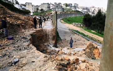 Η δύναμη της φύσης δεν είναι πάντα καταστροφική: Ενίοτε είναι και απελευθερωτική. Αυτό συνέβη στην Ιερουσαλήμ, όπου από τη δυνατή βροχόπτωση κατέρρευσε τμήμα του «τείχους του αίσχους» που έχει ανεγερθεί από τις ισραηλινές δυνάμεις κατοχής, στο πλαίσιο του καθεστώτος «απαρτχάιντ» κατά των Παλαιστινίων.