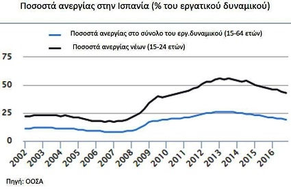 Η τελευταία έκθεση του Ο.Ο.Σ.Α. για την Ισπανία που παρουσιάστηκε στη Μαδρίτη από τον γενικό γραμματέα του Ο.Ο.Σ.Α. και τον υπουργό Οικονομίας, Βιομηχανίας και Ανταγωνιστικότητας (http://www.oecd.org/eco/surveys/Spain-2017-OECD-economic-survey-overview.pdf), επισημαίνει ότι παρά την ανάπτυξη (της τάξης του 2,5% τον χρόνο) η ανεργία παραμένει πολύ υψηλή, ενώ η φτώχεια έχει και αυτή αυξηθεί. Η ανεργία μπορεί να μειώθηκε στο 19%, από 26% που ήταν το 2013, παραμένει ωστόσο σε επίπεδα ανώτερα από αυτά που βρισκόταν πριν από το ξέσπασμα της κρίσης (πριν από το 2010).