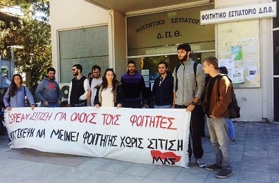 Σήμερα το μεσημέρι πραγματοποιήθηκε κινητοποίηση του Μετώπου Αγώνα Σπουδαστών στην εσωτερική λέσχη της Ξάνθης με αφορμή το οξυμένο πρόβλημα της σίτισης που αντιμετωπίζουν οι φοιτητές. Πιο συγκεκριμένα, ήδη από την περασμένη χρονιά, λόγω της υποχρηματοδότησης και στα πλαίσια των κατευθύνσεων της φοιτητικής μέριμνας, οι μάγειρες πρέπει να ελέγχουν τα πάσο των φοιτητών και σε περίπτωση που κάποιος φοιτητής είναι άνω του 7ου έτους δεν του επιτρέπουν να φάει. Ακόμα έχουν λάβει εντολή να μην δίνουν φαγητό και σε μικρότερους φοιτητές σε περίπτωση που αυτοί ξεχάσουν το πάσο τους.