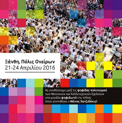 Φιλόκαλλοι πολίτες της Ξάνθης, της πόλης με τα χίλια χρώματα, γενέθλιας πόλης του Μάνου Χατζιδάκι, για τρίτη χρονιά οι πλατείες, οι δρόμοι και τα σοκάκια της πόλης μας θα πλημμυρίσουν από μαθητές και μαθήτριες, που θα συνθέσουν με τη δική τους δημιουργική παρουσία τις ψηφίδες πολιτισμού μέσα απ’ τη διακριτική αύρα του μεγάλου δημιουργού Μάνου Χατζιδάκι. Θα έχουμε το προνόμιο και φέτος να οργανώσουμε μια σύναξη που στην περιρρέουσα ατμόσφαιρα της συλλογικής κατήφειας και παραίτησης, θα προβάλλει τη γόνιμη συνάντηση με το έργο ενός δημιουργού που σφράγισε την καλλιτεχνική πορεία του τόπου ως γνήσια μορφή ψυχικής έκφρασης και ταλέντου. Στην ιστορικά φορτισμένη καρδιά της παλιάς Ξάνθης (πλατεία Μητροπόλεως) το σούρουπο της 21ης Απριλίου θα καλωσορίσουμε τους μαθητές των Μουσικών και Καλλιτεχνικών Σχολείων. Ο χώρος θα λειτουργήσει ως ηχείο μνήμης που θα ανακαλεί αισθήσεις και ποθητές σχέσεις κτιρίων, ήχων, χρόνου και θυμικού. Ενορχηστρώνοντας στην πύκνωση της ιστορικής μνήμης τις αυθόρμητες μελωδίες και τους ήχους των μουσικών οργάνων από μαθητές και μαθήτριες αλλά και πολίτες, θα συγκροτήσουμε την «ορχήστρα» που θα αποτελέσει τον προπομπό της οραματικής μας πρότασης για έναν τόπο ανοικτό σε ποικίλες δημιουργικές συνθέσεις. Σ’ αυτή τη συνάντηση, είμαστε ταυτόχρονα θεατές και πρωταγωνιστές όλοι μας. Η συμμετοχή μας στο προσκλητήριο αυτό πρέπει να είναι πάνδημη!