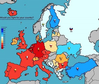 Τα υψηλότερα ποσοστά πολιτών που δηλώνουν πως θα έδιναν τη ζωή τους για την πατρίδα τους καταγράφονται σε
