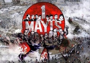 Πίσω από την εικονιζόμενη αφίσα της τουρκικής πρωτομαγιάς με τους νεκρούς των γεγονότων της πλατείας Ταξίμ, η κυβέρνηση Ερντογάν απαγορεύει τις διαδηλώσεις εκεί και αναπτύσσει αστυνομική δύναμη 40.000 ανδρών στην Κωνσταντινούπολη για την εργατική πρωτομαγιά!
