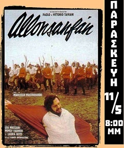 Η ταινία “Allonsanfan” (παράφραση του “εμπρός παιδιά“) των αδελφών Paolo και Vittorio Taviani, με αφορμή τον πρόσφατο θάνατο του δεύτερου, προβάλλεται το βράδυ (20.00) της Παρασκευής 11 Μαΐου στη “Ρωγμή”.