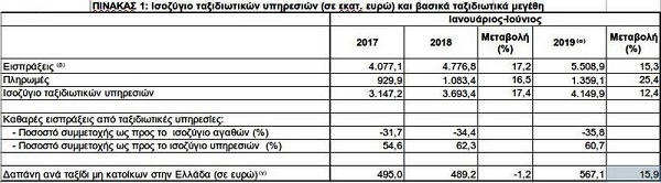 Στα 567 -έναντι 489 ευρώ πέρυσι, αυξημένη κατά 15,9%- έφτασε η κατά κεφαλή δαπάνη των τουριστών το πρώτο εξάμηνο του 2019, σύμφωνα με έκθεση της Τράπεζας της Ελλάδος.